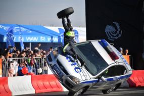 Автомобиль ГАИ рухнул на полицейского во время показательных выступлений в Подмосковье