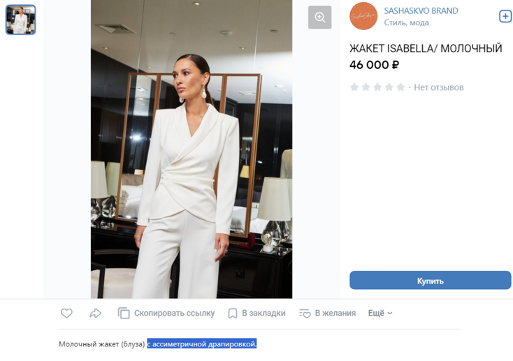Итого: образ Ксении без сумочки обходится в 135 тыс. рублей.