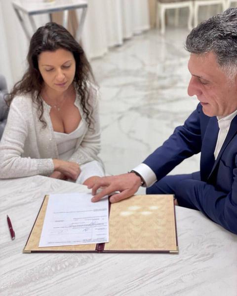 Маргарита Симоньян рассказала, что вышла замуж за Тиграна Кеосаяна. О том, когда произошло сие знаменательное событие, она умолчала. Но о намерении стать женой сообщила лишь накануне. В загс журналист отправилась в белом, но неновом платье, а также с макияжем и прической, которые сделала сама.