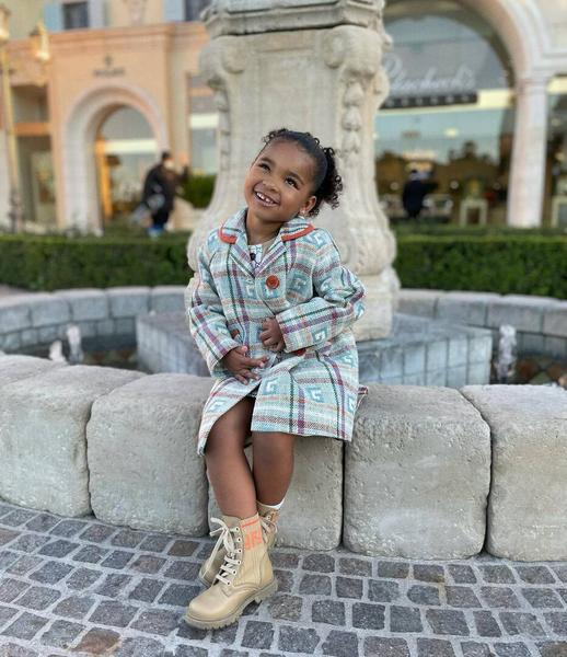 Снимками с детьми сегодня поделились Екатерина Гордон и Хлои Кардашьян. Последняя опубликовала целую серию фотографий с дочерью. Малышка Тру уверенно позировала для мамы в клетчатом пальто и очаровательном сарафане.