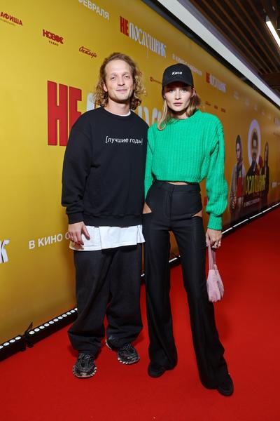 Аглая Тарасова появилась на премьере в платье-жакете, а Ольга Кузьмина — в кожаных шортах