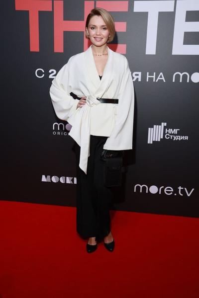 Виктория Толстоганова блистала на премьере в противоречивом наряде. Она надела строгий черный костюм, но под ним оказался весьма нескромный кружевной топ.
