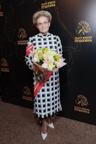 Вдова Иосифа Кобзона Нелли Кобзон выглядела элегантной, помолодевшей и жизнерадостной. Ирина Безрукова для выхода в свет надела лаконичное платье изумрудного цвета и сделала необычную для себя прическу — кудри.
