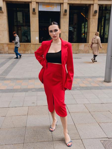 Среди звездных гостей была замечена молодая мама Ольга Серябкина, выбравшая для бранча ярко-алый костюм с пиджаком oversize, юбкой с высокой талией актуальной в этом сезоне длины миди. Дополнила look звезда лаконичным черным кроп-топом. Гладкая прическа с прямым пробором и стильный макияж с акцентом на глаза лишь подчеркнули женственность образа певицы.