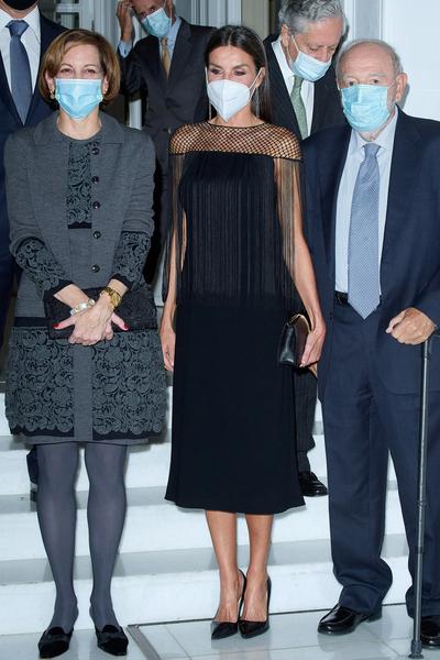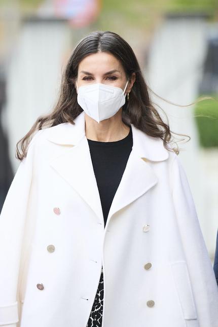 Для официального мероприятия ее светлость вооружилась юбкой-карандашом Roberto Verino с акцентным леопардовым принтом. Наряд Летиции можно взять как референс, чтобы легко вписывать анималистические мотивы в образы для офиса и на каждый день.