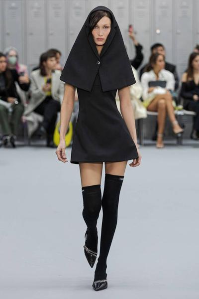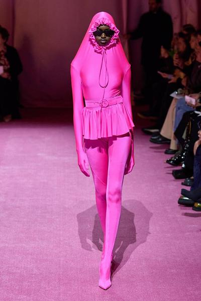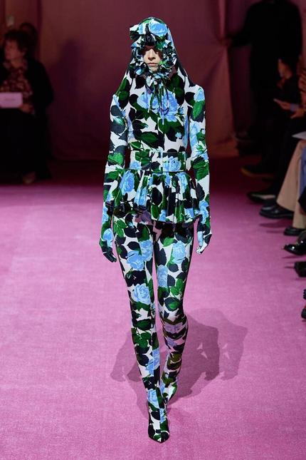 Силуэт буквально «съедает» любые намеки на изгибы фигуры и соблазнительность. На показе новой коллекции Richard Quinn Ирина Шейк продемонстрировала, как это выглядит на практике. Супермодель едва узнали — были видны только глаза и губы.