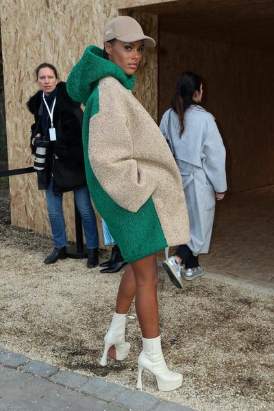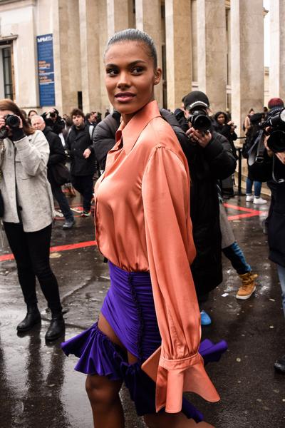 Тина Кунаки посетила показ Y/Project в Париже и на этот раз перенеслась с подиума на front row, где наблюдала за шоу вместе с дизайнером Аминой Муадди. 24-летняя супруга Венсана Касселя снова показала (и доказала), кто здесь главная модница. Модель составила необычный монообраз, который, определенно, стоит взять на вооружение, если классические брючные двойки уже наскучили.