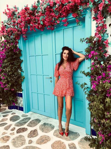 По курортным улицам дефилирует и Ксения Бородина, причем в дерзких туфлях Valentino в цвете перца чили. Дополнило образ алое платье экстремальной длины с нежным принтом и декольте, с которым смотреть в глаза действительно трудно.