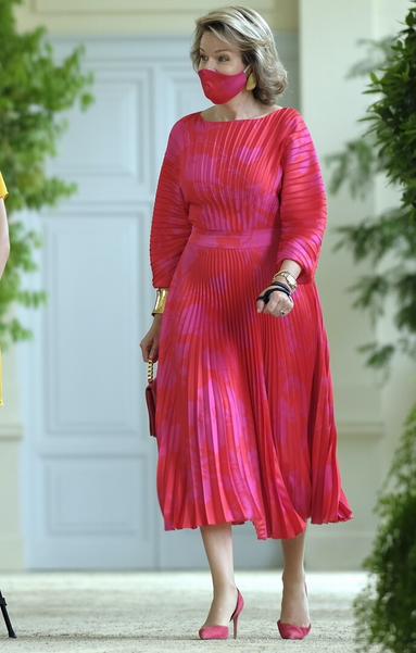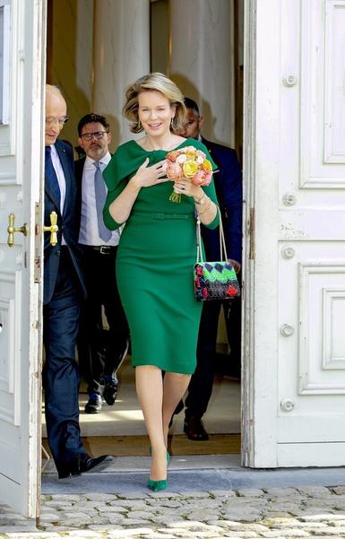 Королева Матильда отправилась в Антверпенскую оперу, чтобы насладиться танцевальным представлением и классической музыкой. Для культурной программы ее величество часто выбирает один и тот же комплект — молочно-белую блузку в паре с любимыми брюками в клетку, усыпанными мерцающими пайетками. Отличный способ разбавить деловой шик и добавить настроение праздника!