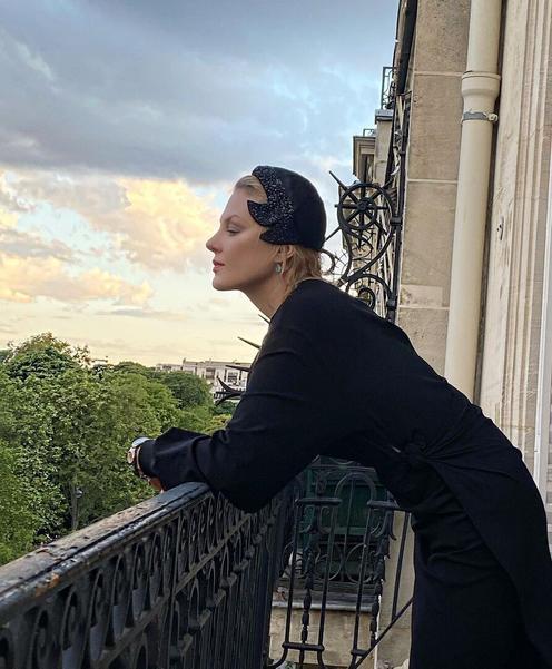 В завершение — пара лаконичных ювелирных акцентов и давно полюбившийся актрисе головной убор — шляпка-менингитка, которую она носит и в пир, и в мир.