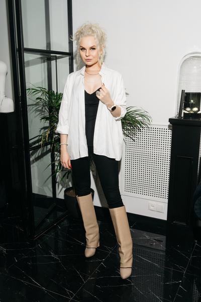 Актриса в очередной раз совершила оммаж черному цвету: на презентации она появилась в базовой футболке и джинсах, а сверху накинула блейзер. Последний при правильном выборе заменит целый арсенал вещей на все случаи жизни: от светских мероприятий до офисных будней. Лукерья разбавила total black сетом из акцентных украшений — трудно было удержаться и не примерить трофеи из новой коллекции.