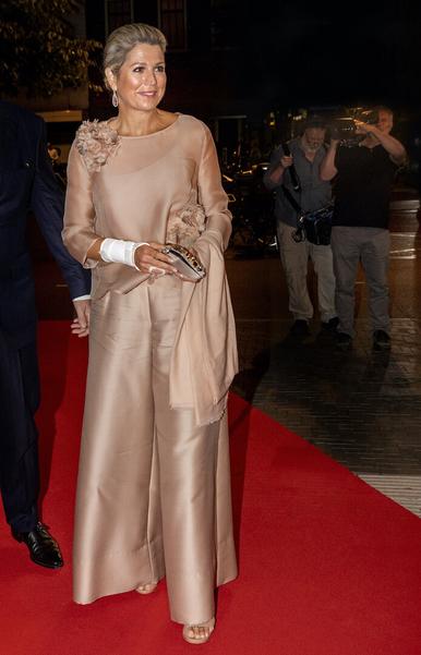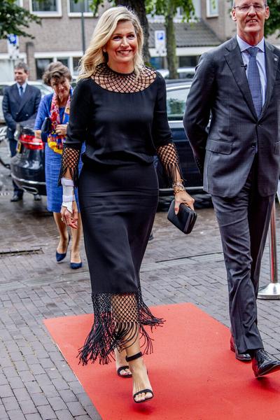 Королева Нидерландов Максима отправилась в Роттердам по случаю открытия денежной недели в музее Кюнстхал. Ее величество, определенно, была в чудесном настроении — улыбалась без остановки, приветствовала публику и даже отправляла воздушные поцелуи. Для визита монаршая особа выбрала монохромный образ с юбкой нескромной длины, которую носит крайне редко.