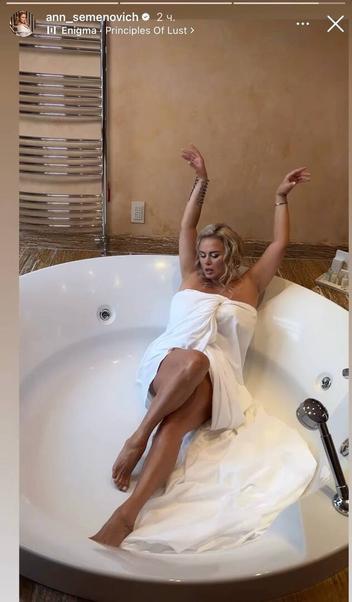 Экс-солистка группы «Блестящие» Анна Семенович продемонстрировала постройневшую фигуру в джакузи. 44-летняя певица опубликовала в своем блоге видеоролик, на котором запечатлена в банном полотенце.