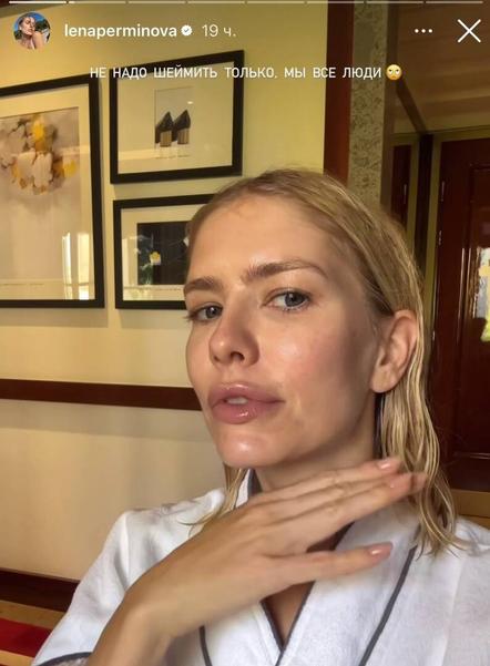 «Фото без прикрас. Вот так я выглядела. Хотелось плакать и вообще спрятаться от людей, а не то, чтобы идти на показ. Просто ужас. Не надо шеймить только, мы все люди», - разоткровенничалась Перминова.