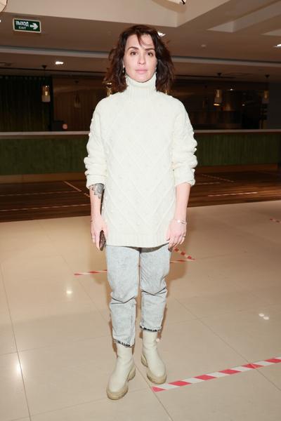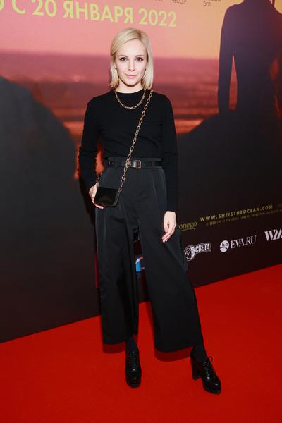 В столичном кинотеатре «Октябрь», несмотря на минус за окном, было по-настоящему жарко. Знаменитости собрались на светской премьере картины «Она — океан», с удовольствием позировали фотографам и хвастались зимними аутфитами. Так, например, популярная исполнительница Катя Лель решила раскрасить серые будни и появилась на премьере в ярко-зеленой шубе, больше напоминающей малахит. Дополнила свой экстравагантный образ певица серым трикотажным комбинезоном, сумкой с оригинальным принтом, «армейскими» ботинками на грубой подошве и массивными украшениями. Кто-то может отметить, что перебор, но на Кате нефритовая верхняя одежда в сочетании с акцентными деталями смотрелась очень даже гармонично.