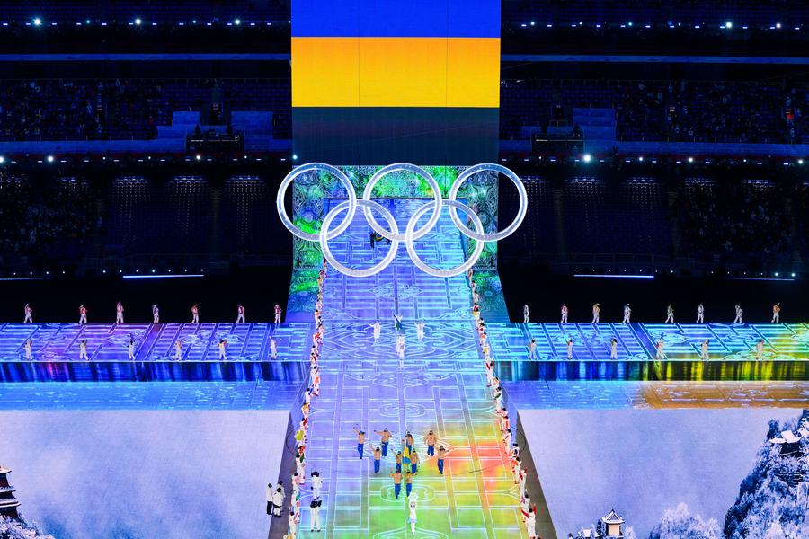 Парад атлетов завершили хозяева Олимпиады, сборная команда Китая. Помимо парада атлетов, на арене стадиона происходили красочные шоу: фееричные хореографические номера, лазерное шоу в ледяном блоке, на кубе в центре арены эффектно напомнили о предыдущих зимних Играх, фейерверки и, конечно, световые представления.