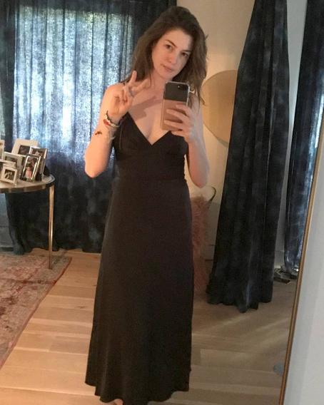 В Instagram актриса показала, как ее наряд выглядел сзади. «С возвращением», — подписала Энн Хэтэуэй фотографию.