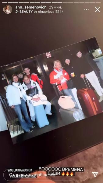 Певица показала кадры с Юлией Ковальчук, Ксенией Новиковой и Жанной Фриске. Фото были сняты во время совместных съемок и мероприятий, которые они посещали. Она рассказала, что в те годы все солистки между собой были очень дружны и даже часто вместе отправлялись отдыхать и присутствовали на днях рождения друг друга.