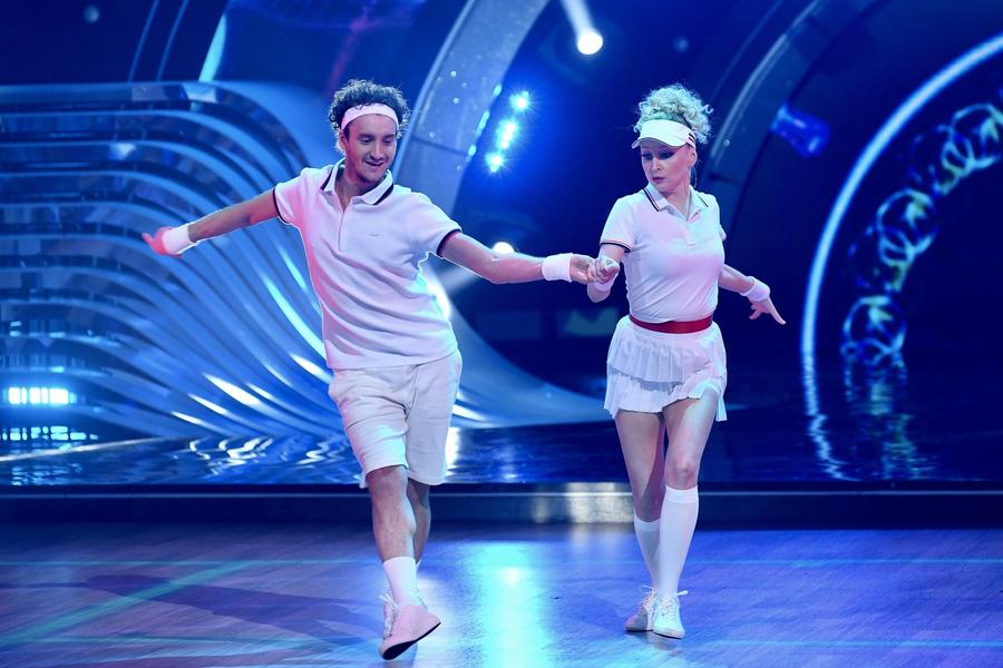 Ольга Медынич и Руслан Хисамутдинов устроили на паркете танцевально-теннисный поединок под песню Little Big. Оттачивая мастерство в джайве, Ольга тренировалась с апельсинами, а потом… с кочанами капусты в руках! Члены жюри отметили, что номер получился зрелищным, но технически слабым.