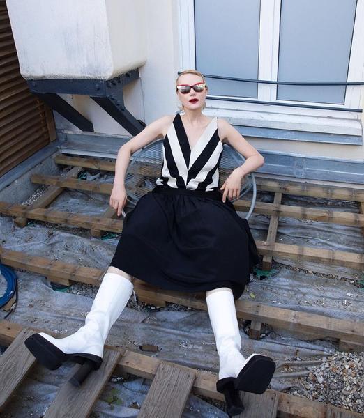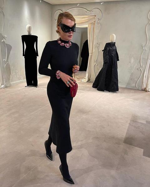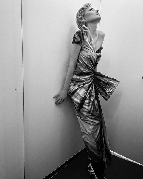 Рената Литвинова выбрала для празднования черное макси-платье, конечно же, от бренда Balenciaga, креативным директором которого является ее хороший друг — грузинский дизайнер Демна Гвасалия.