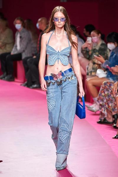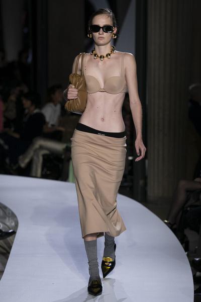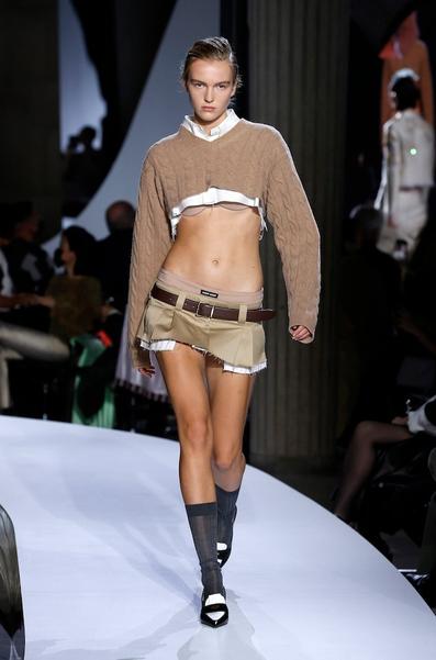Первое и главное — возвращение культового силуэта 2000-х: экстремально короткий верх и не менее «опасный» низ. Самые модные девушки уже добавили дополнительные тренировки в свой график: внимание к прессу в весенне-летнем сезоне будет повышенным. Крошечные юбки, кроп-рубашки и джемперы Miu Miu буквально монополизировали топы трендов и даже стали героями мемов (и вы точно видели эти комплекты на страницах глянца и в Instagram).