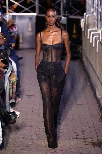 Тема белья раскрыта на все сто. Корсеты из кружева и сетки также не стоит скрывать: после привычного оверсайза придется затянуть пояса. И это хорошо: в считаные секунды можно обзавестись осиной талией и удвоить порцию наггетсов с сырным соусом.