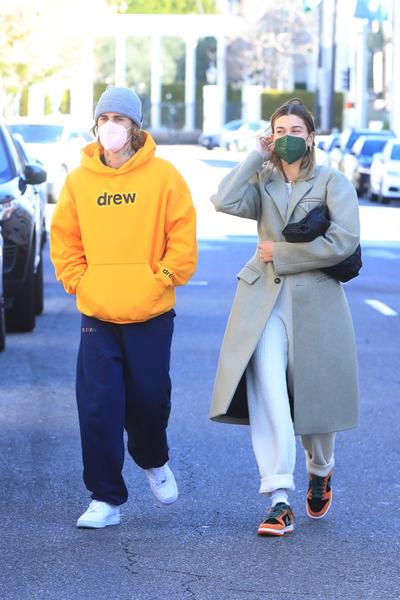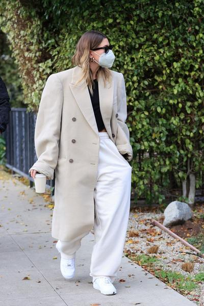 Кто знает толк в спортшике, так это Хейли Бибер. Даже когда папарацци атакуют на выходе из фитнес-клуба, модель выглядит на миллион. У Хейли мы позаимствуем сочетание расслабленных черных брюк, меланжевой толстовки с капюшоном и пиджака внушительных размеров. Фэшиониста добавляет к аутфиту массивные кроссовки, а от назойливых фотокамер прячется за темными солнцезащитными очками и козырьком бейсболки Balenciaga.