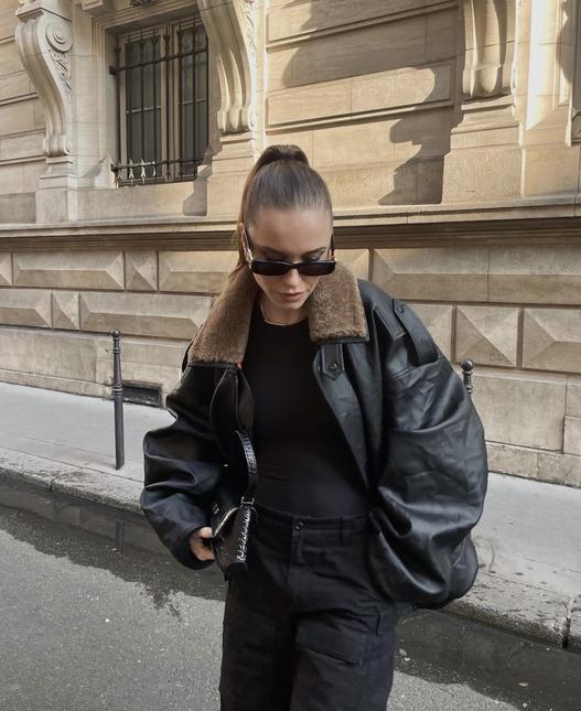 На практике мы предлагаем рассмотреть несколько нескучных вариантов верхней одежды. Недоели кожаные косухи? Присмотритесь к гиперобъемным бомберам, напоминающим куртки из девяностых. Инфлюенсеры по всему миру их уже облюбовали — очередь за вами. Некоторые специально выбирают те, что максимально олицетворяют дух времени, — с нарочито небрежным декором и потертостями.