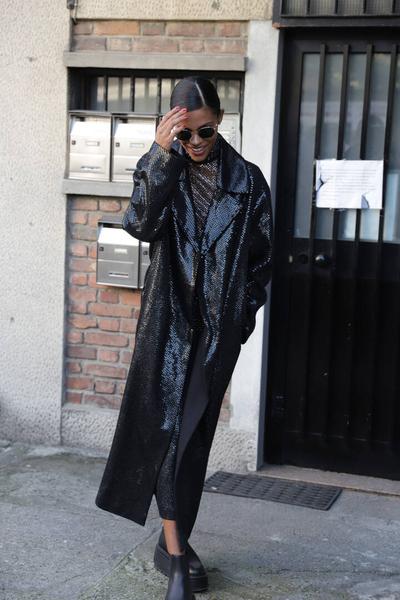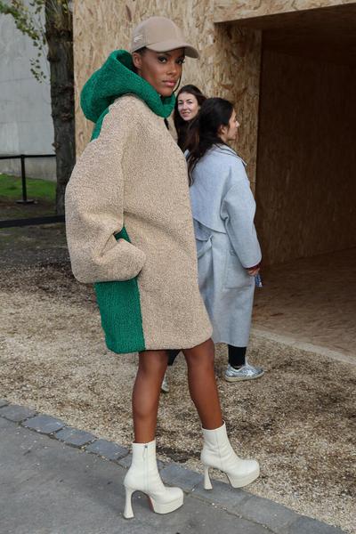 Еще один беспроигрышный вариант — теплый блейзер oversize, который выглядит на хрупких плечах максимально брутально. В качестве референса возьмите многослойный образ Бланки Миро, в основе которого — фактурный блейзер, который выглядит так, будто она одолжила его у бойфренда.
