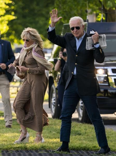Чета Байден принимала в доме гостей по случаю выхода на пенсию члена Верховного суда Стивена Брейера. Для важной встречи первая леди подобрала чинный костюм на базе эффектной юбки-карандаша и жакета с баской. Дополнили образ слингбэки Christian Dior, которые и подвели супругу президента. По всей видимости, Джилл забыла записаться на педикюр.